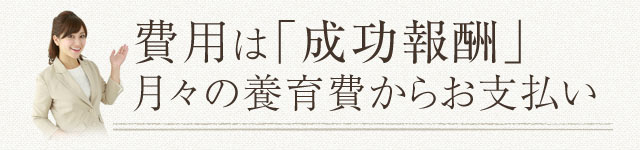 相談者が費用(初期費用や相談手数料等)を支払うのではなく、元夫から支払われた養育費の中から一部を成功報酬としますので、手持ち資金が乏しい方も安心して依頼できます。